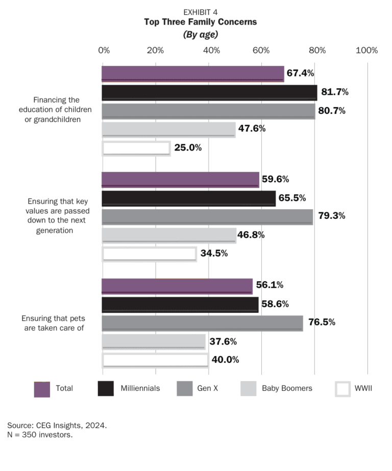 - Investors are also worried about how to best pass along their values and beliefs to the next generation.