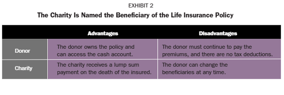 Option 1: The charity is named the beneficiary of the life insurance policy