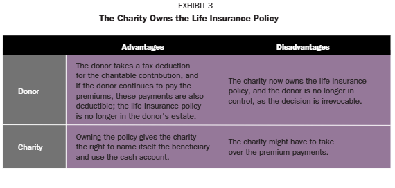 Option 2: The charity owns the life insurance policy